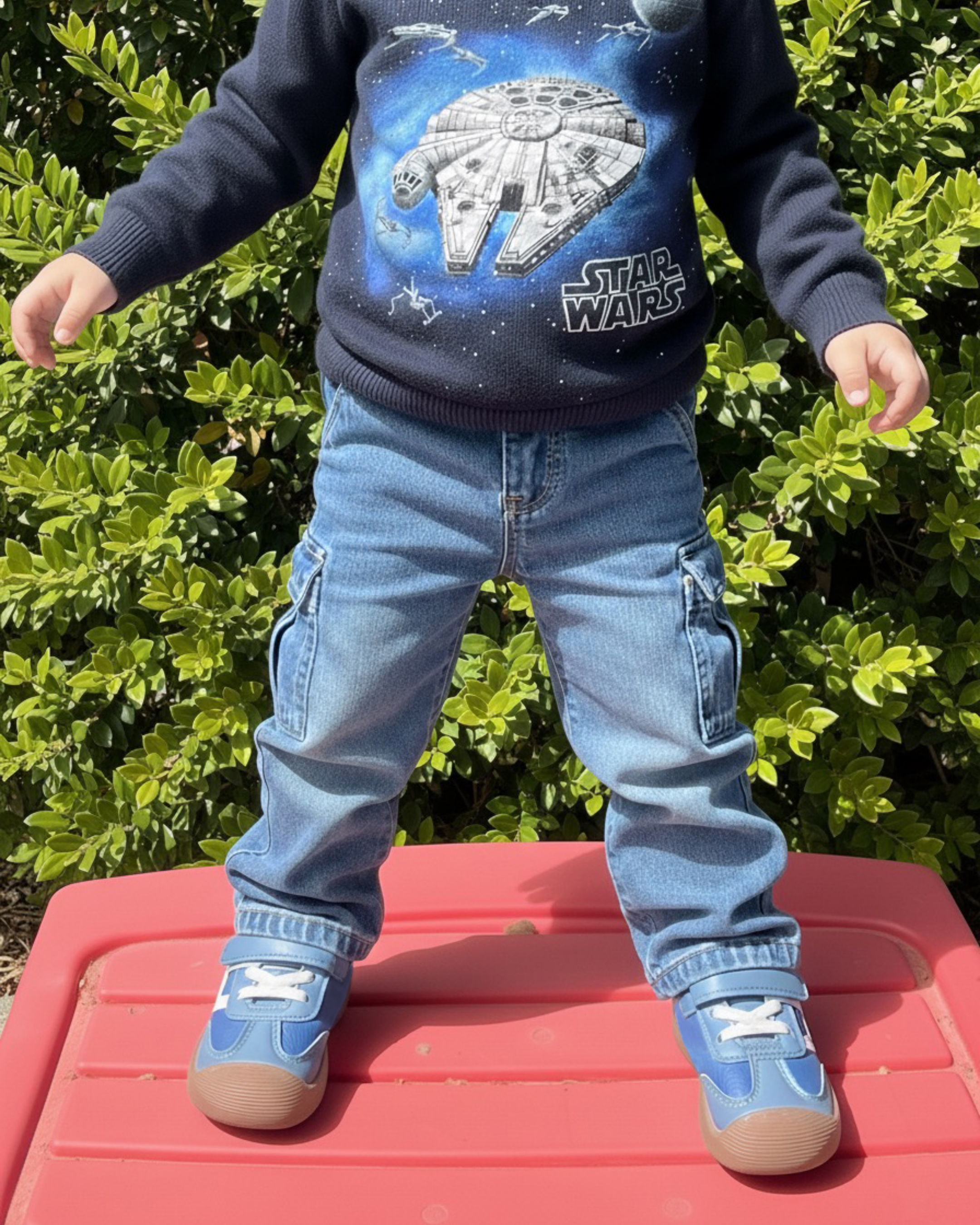 With flexible materials and a fully adjustable hook-and-loop strap, the shoe naturally adapts to your child’s foot, ensuring a comfortable fit for both narrower and wider feet.