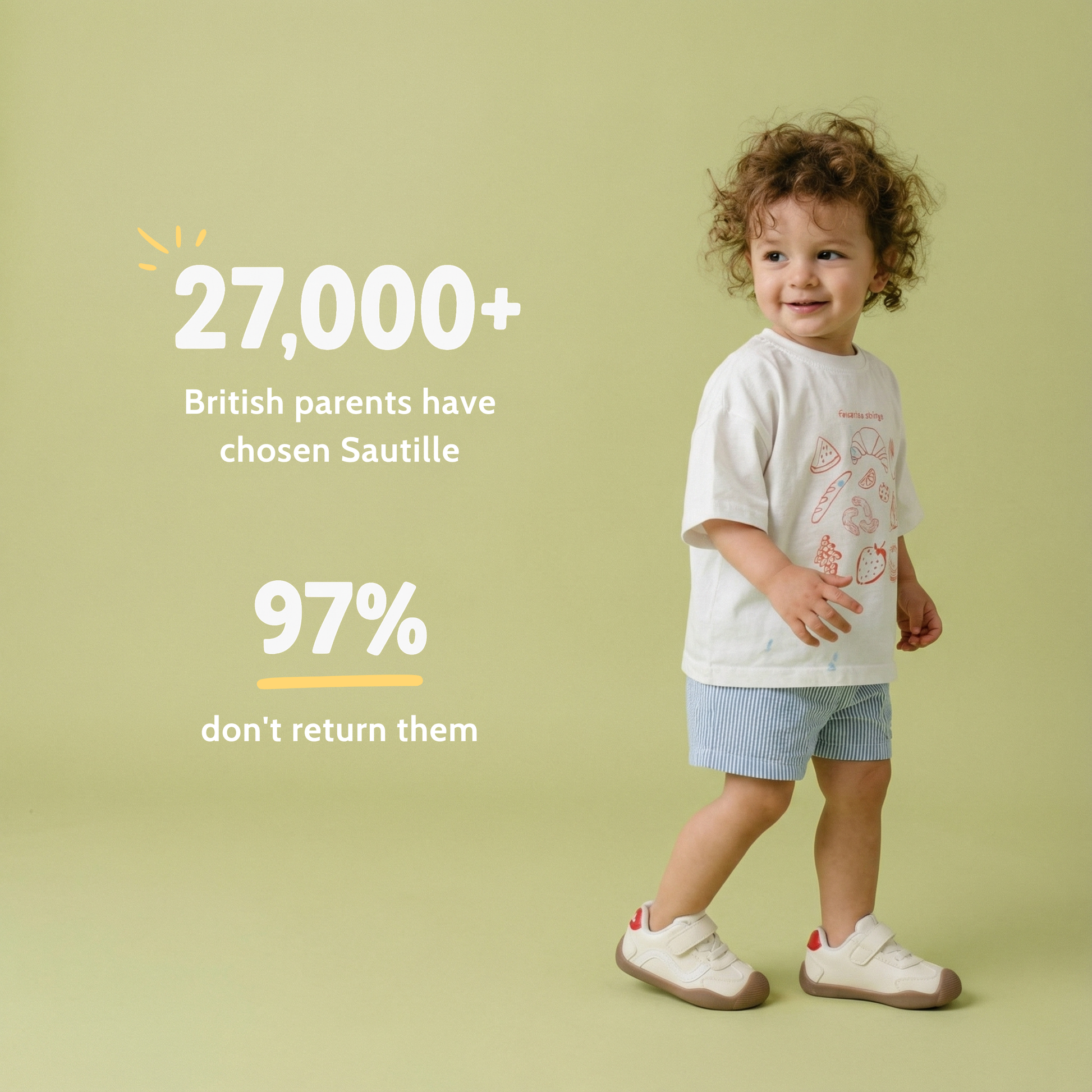 At Sautille, we started with one belief: nothing beats barefoot walking for little ones learning to walk. That’s exactly what our shoes are designed to mimic – with precision and no compromises.