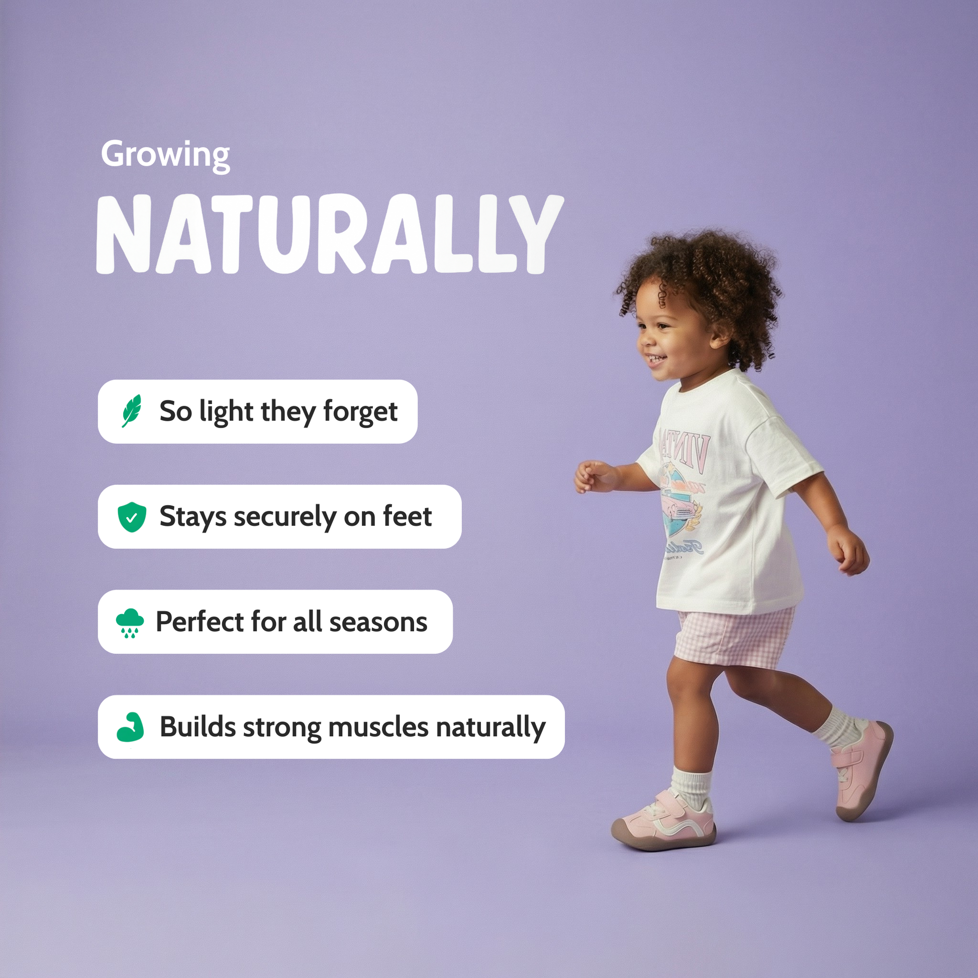 Unlike many traditional shoes – often stiff, tight, or heavy – Sautille respects the natural movement of growing feet with: